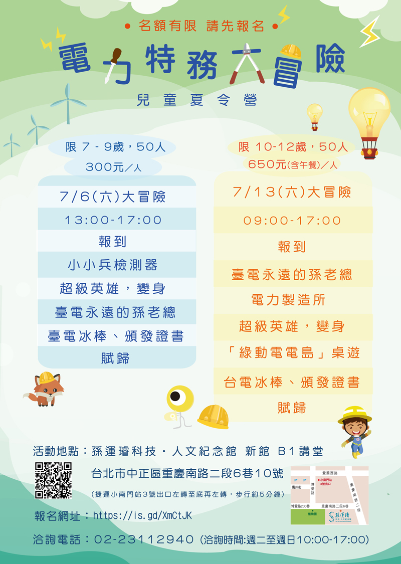 洽詢電話:02-23112940 (洽詢時間:週二至週日10:00-17:00)